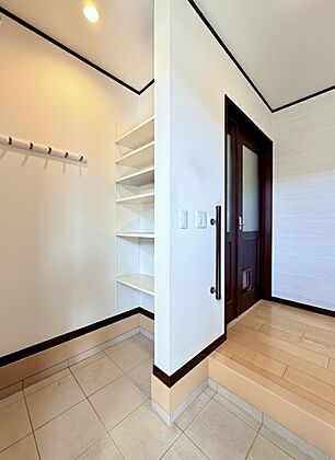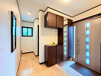 散らかりがちな玄関もたっぷり収納できる玄関収納がありスッキリ広々。いつも気持ちよくご家族を迎えてくれます。