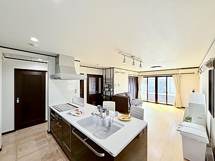 アイランドキッチンで調理スペースはゆとりがある広さです。 IHクッキングヒーターでお子様にも安心です。また、食器洗浄乾燥機付きで忙しいママをサポートしてくれます。