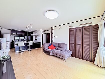 リビングを中心に空間全体が広がっている間取りで、どこにいてもお子様に目が行き届くので安心です。ご家族の会話がはずむ、解放的なLDKです。
