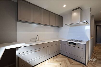 キッチン、壁付キッチンは家事動線が効率的なので日々の配膳が楽にできそうです。[2025年8月2日撮影]