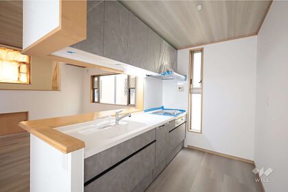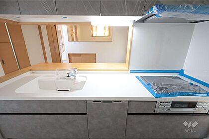 キッチン、対面キッチンを設け、家族とのコミュニケーションを考慮しました。ママも楽しみながら家事ができそうです♪[2025年8月24日撮影]