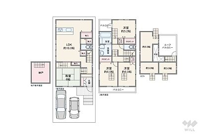 間取りは延床面積99.63平米の4LDK。ルーフバルコニー付きのプラン。