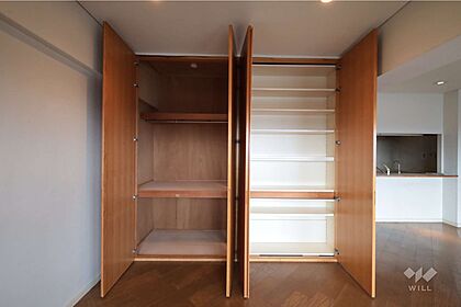 収納、収納が充実しており、掃除機やアイロン台など生活用品もスッキリしまえます。余計なものが視界に入らないリビングで快適に過ごせます。[2025年10月25日撮影]