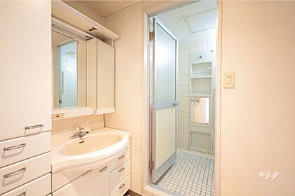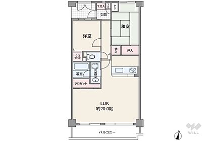 間取りは専有面積73.26平米の2LDK。LDKが広々としたプラン。キッチンと洗面室の動線が近く、家事効率にも配慮されています。玄関と廊下の動線がクランク状のため、玄関先から室内を見通しにくい造り。