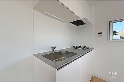 キッチン。キッチン横に窓があるので、臭いの強いものを調理しても部屋に臭いがこもりにくいです。