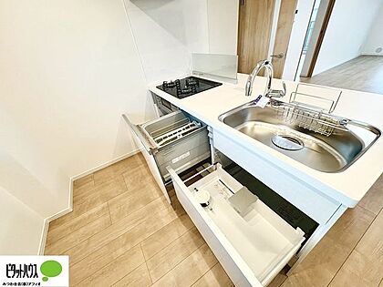 食事の後の片付けが楽になる、食器洗い乾燥機付き。