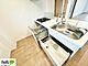 三面鏡の裏や、シンク下など多数収納を備えた、広々とした洗面化粧台です。