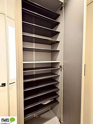 シューズボックスには、身だしなみチェックができる全身ミラー付き!