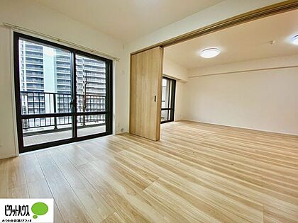 リビング横には洋室が。ドアを開けて、さらに広い空間にすることも可能です。