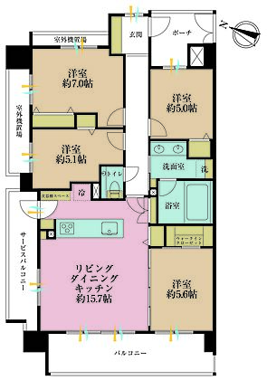 4LDK、専有面積88.27m2、バルコニー面積14.2m2