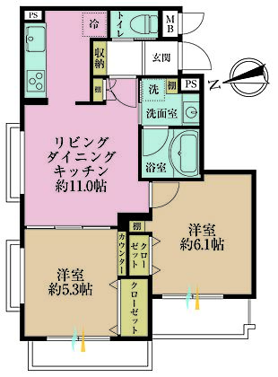2LDK、専有面積50m2、バルコニー面積6.03m2