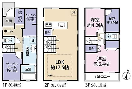 納戸約2.6帖:収納としてだけではなく、リモートワーク時など多目的に利用できそうです。