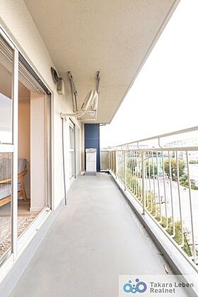バルコニーには物干し金物を装備。リビング・ダイニングに面している為、空間の広がりを感じさせてくれるスペースとなっております。