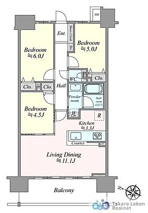 バルコニーはリビング・ダイニングに面している為、空間の広がりを感じさせてくれるスペースとなっております。