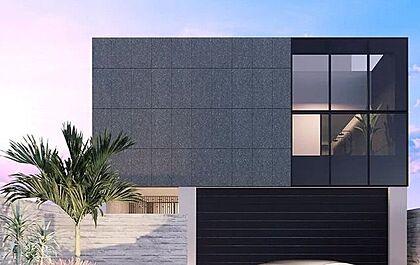 中目黒4丁目の静寂に佇む洗練されたモダン邸宅。駐車4台(車庫2台)が可能な高い機能性も備えた、都会のプライベートな迎賓空間です。(外観パース)