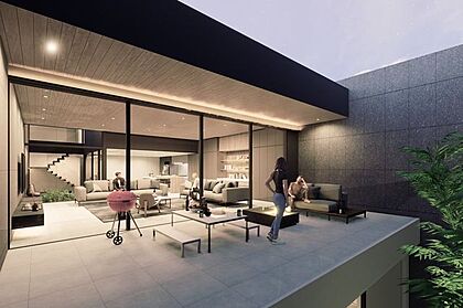 都会の夜景を望む、3階プライベートテラス。 空を見上げながら贅沢な時間を過ごす大人の隠れ家。都心でありながら、心を開放する至高の空間。(内観パース)