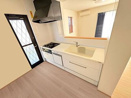 対面式キッチンからは声もかけ易く、料理中も会話が弾みそう