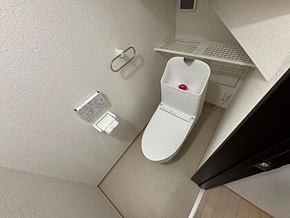 トイレには快適な温水洗浄便座付。冬場でも便器が暖かく快適です