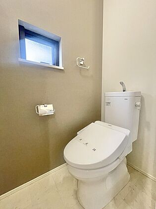 お手洗いこそシンプルな清潔感が重要、小さな窓を設置することで清潔感をより際立てます。