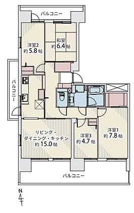 | 間取り | 4LDK | 専有面積 | 94.80m2(壁芯) |