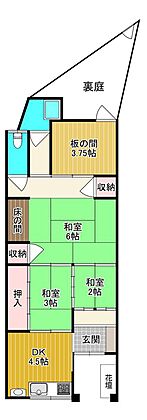 | 間取り | 4DK | 構造及び階数 | 木造 1階建て(連棟式) |