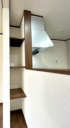 【リフォーム済み】リビングの収納スペースです。柱を活用して、小物を置けるスペースを作成いたしました。