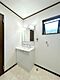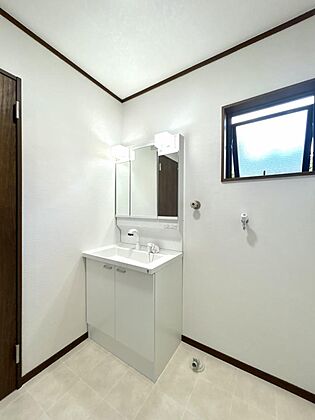 【リフォーム済み】洗面所です。照明と収納が付いているので、使い勝手が良いですね。