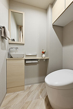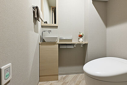 【トイレ】トイレには独立した手洗い器を採用しています。使用後すぐに手洗いできて衛生的。鏡付きのため、ゲストの身だしなみチェックにも便利です。