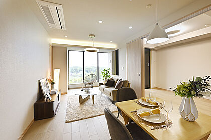 2つのバルコニー付きの眺望良好な住まい。LDKに隣接する約5.0帖の洋室は引き戸を開けて続き間としても利用可能。浄水器、ディスポーザーなど機能的な設備付き。WICをはじめ、全居室に収納を設けています。
