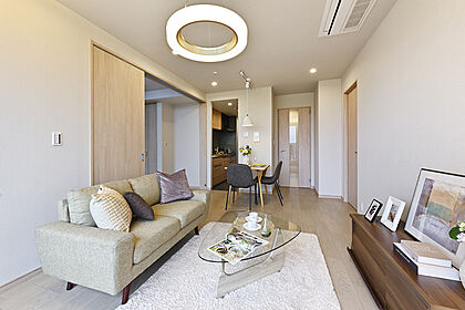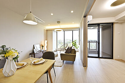 【LDK/約12.5帖】LDKには約5.0帖の洋室が隣接しており、引き戸を開けて続き間としても利用できます。ライフスタイルに応じて活用できます。