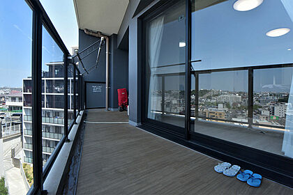 【バルコニー】陽当りの良い南西向きバルコニーです。10.33平米の広さがあります。リビングより出入り可能。物干し金具付きです。