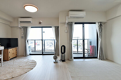 【LDK】生活のメインスペースとなるLDKは、約21.3帖の広さです。南西向きバルコニーに面しており、明るい光が差し込む空間です。