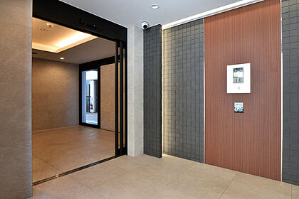【エントランス】落ち着いたトーンで重厚感があります。清潔感があり、段差がなく、フラットなエントランスです。