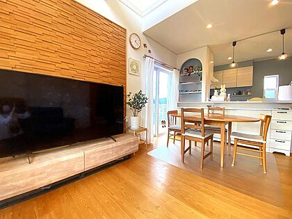 「リビング」■木の質感が際立つテレビボード壁面がおしゃれな空間を演出しています♪