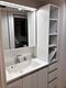 •  落ち着いた空間を演出するカラーと、ゆったり落ち着いてお使い頂ける広さが魅力のパウダールーム。収納もあり、スッキリと見映えの良い空間に拵えました。