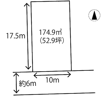 | 土地面積/坪(坪単価) | 174.99m2(登記簿)/53.03坪(19.50万円) | 代表的な接道 | 一方 公道 南 6m ※詳細は備考欄をご確認ください |