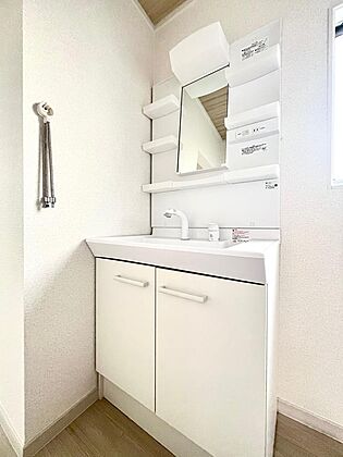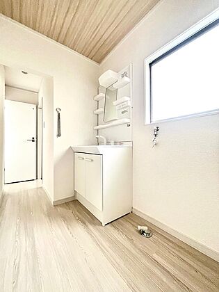 洗面所には室内物干しも可能なよう、着脱式の物干しがございます!