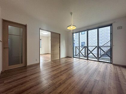 1階LDK13帖!ダイニングとしてもご利用できます!また、ウッドデッキもあります!シャッターは電動シャッターでボタン一つ!