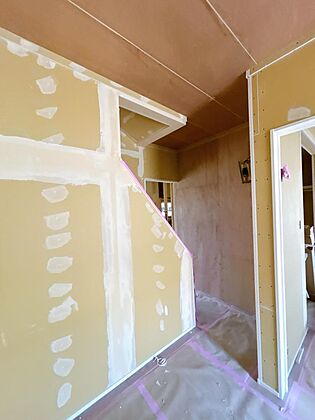 【リフォーム中】一階廊下です。こちらはリビングに取り込み、日の入る明るい空間になります。