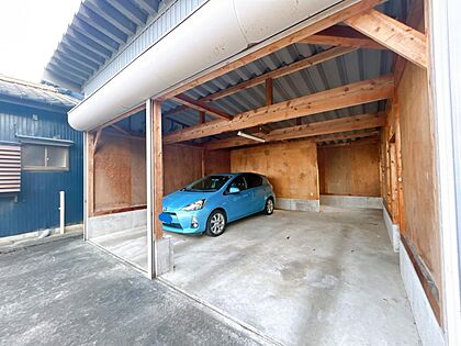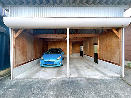 【リフォーム中】駐車場の別アングルです。車庫内は不燃材で仕上げ、クリーニングを行います。