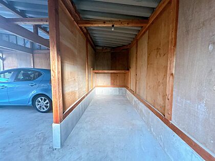 【リフォーム中】車庫内には荷物置スペースがあります。車庫内は不燃材で仕上げ、クリーニングを行います。