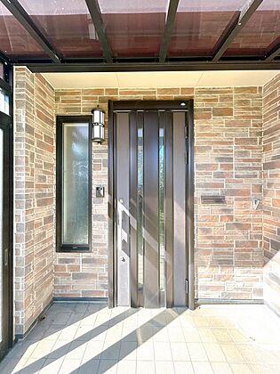 【リフォーム中】玄関扉外観写真です。鍵交換と照明の交換を行います。