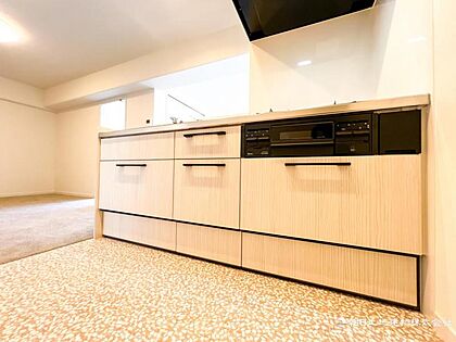 【レンジフード】調理中に発生する煙、蒸気、臭い、油分を効率的に吸い込み、外部へ排出することです。キッチン内の空気を清潔に保ち、火災のリスクを減少させる役割を果たします。