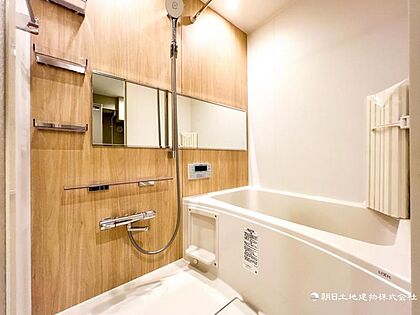 【浴室】優しい色合いでバスタイムも心地良く、家族の笑顔が満ちる安らぎの場所へ。排水口やカウンターのお掃除もラクに出来ます。
