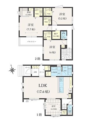 •  【洋室】2階の洋室は3部屋あります。全てのお部屋に収納完備。全てウォークインクローゼットがついています。