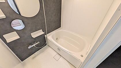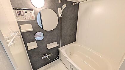 アクセントパネルがお洒落な浴室です。