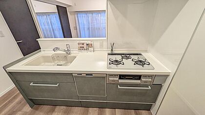 グレーを基調とした落ち着いたキッチンです。
