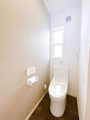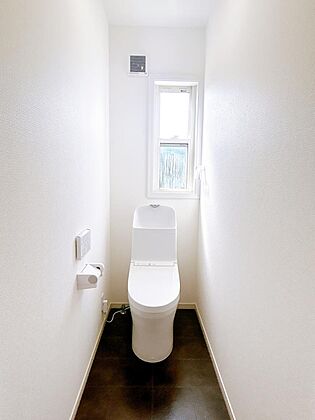 •  【リフォーム後】1階トイレです。トイレは新品交換、クッションフロアの張替え、壁・天井のクロスの張替えを行いました。
