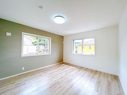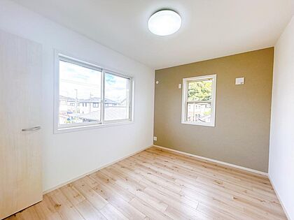 •  【リフォーム後】2階洋室6帖です。フロアタイルの重ね張り、壁・天井のクロス張替えを行いました。お子様の部屋としてもよいですね。