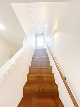 •  【リフォーム後】階段はクリーニング後、ワックス仕上げです。段差も緩やかで昇降しやすいです。
